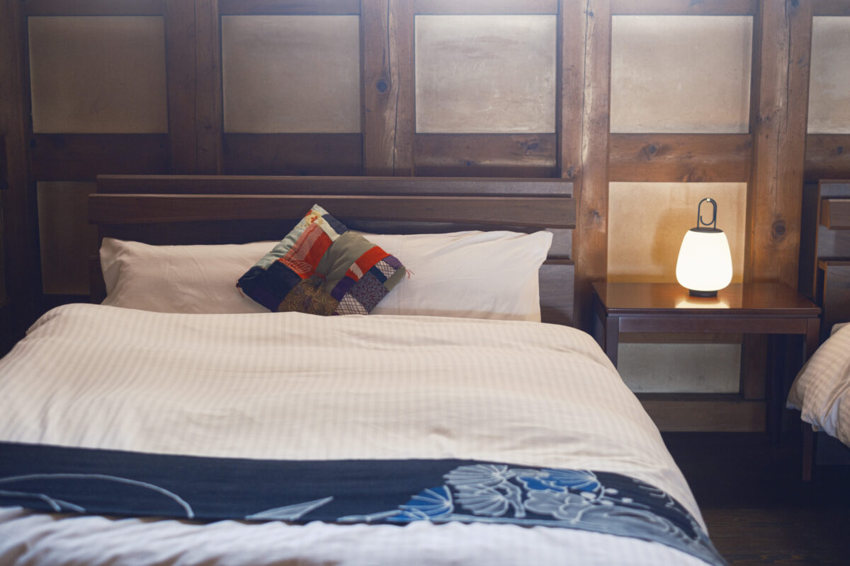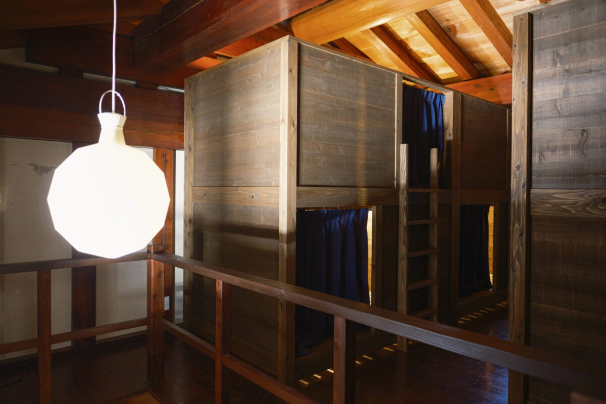 豪雪地帯である秋田県南特有の建築構造「内蔵」をリノベーションした2種類のドミトリールーム「バンク」「ボックス」のお好きな部屋タイプにご宿泊いただきます。いずれのベッドもセミダブル以上の広さがあり、ドミトリー形式でありながらゆったりとプライベートな時間を過ごしていただくことができます。朝食は、秋田県南の発酵食文化をテーマにしたバイキングをご用意しています。
