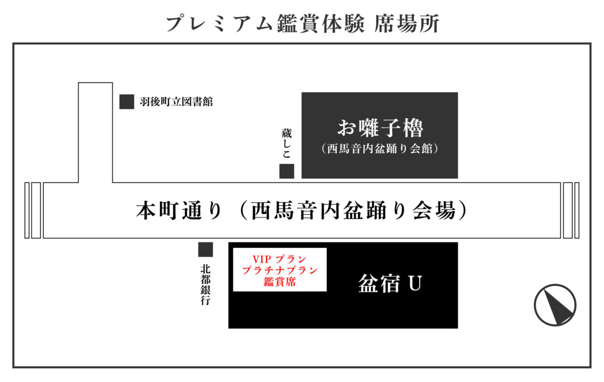 鑑賞席は、西馬音内盆踊りの会場となる本町通り沿いにある盆宿U母屋1・2階に設置されます。